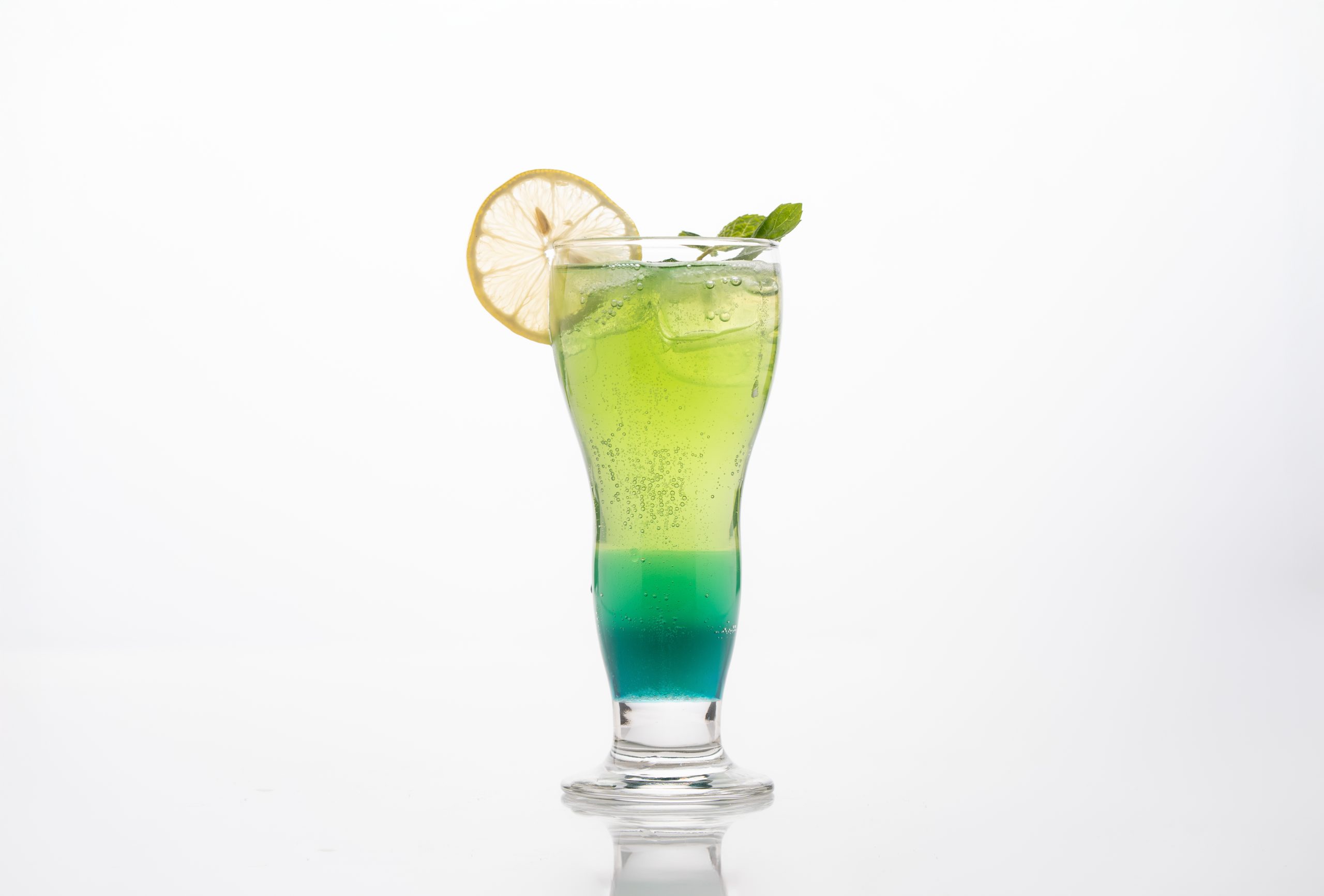 نكهات مركّزة من الكركديه الأزرق والباشن فروت في مشروب غازي خفيف. خالية من مشروبات الطاقة